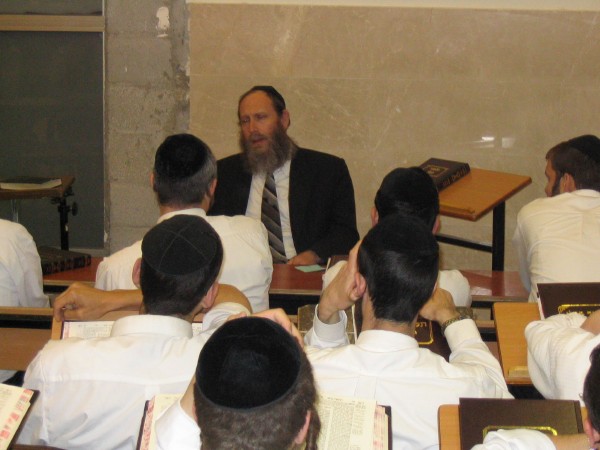 Kollel students attending a lecture conducted by Rabbi Kirschenbaum.