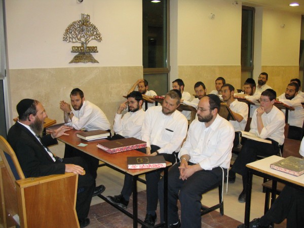 Kollel students attending a lecture conducted by Rabbi Kirschenbaum.