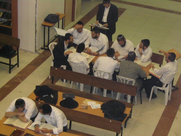 Individual Talmudic study group being conducted.
